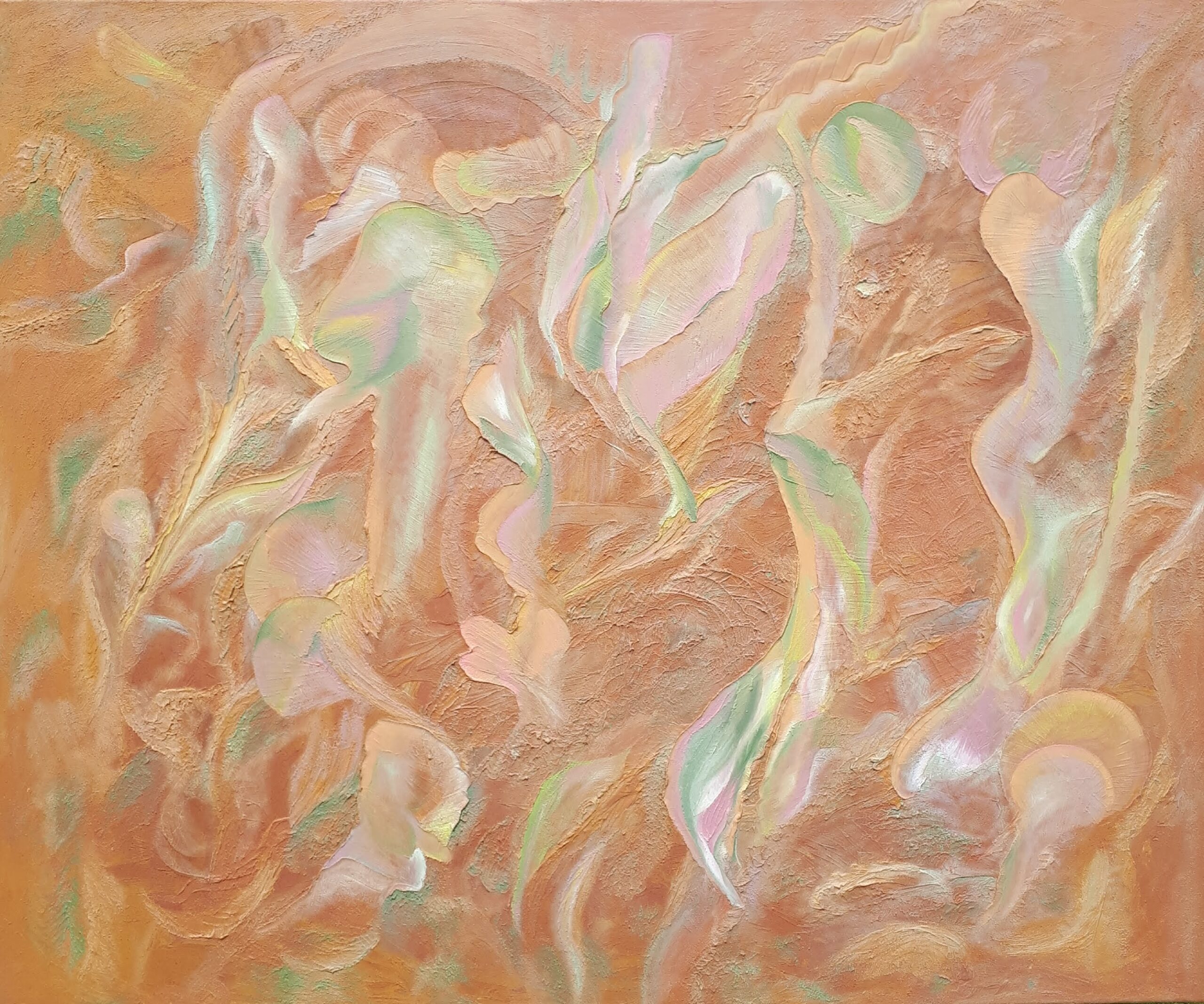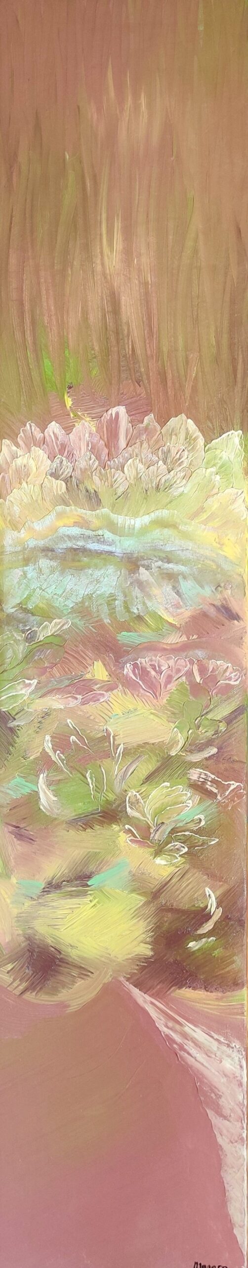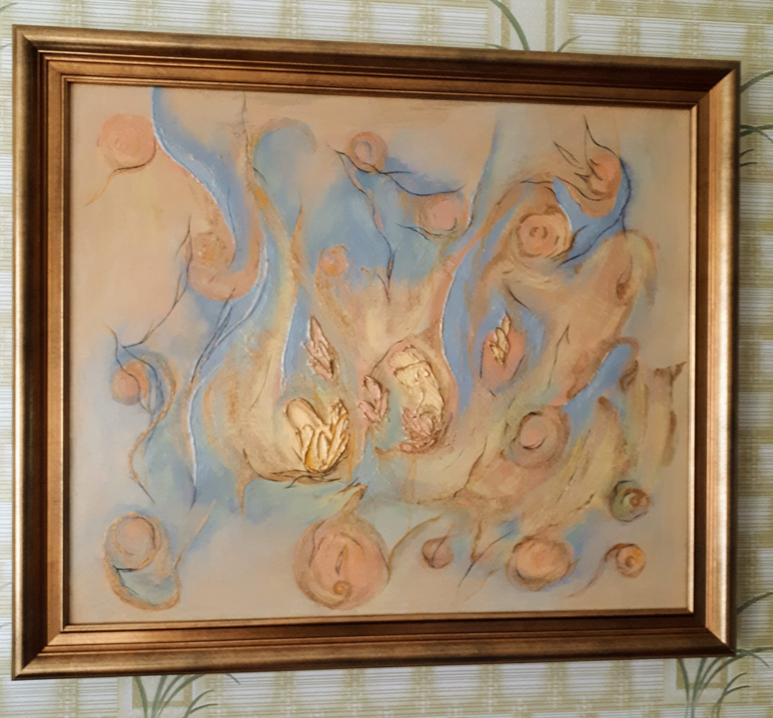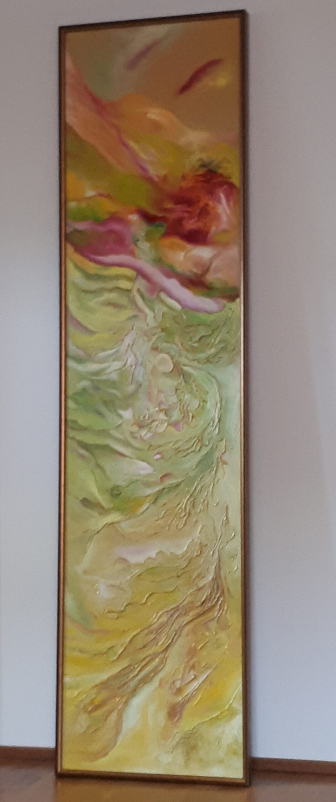 Helgemad hetked inimese mõttemaailmas. Osa elust, osa unelmaist, värvide kompositsioon peegeldab tuleviku nägemust endast ja võib-olla ka teiste rõõmudest.