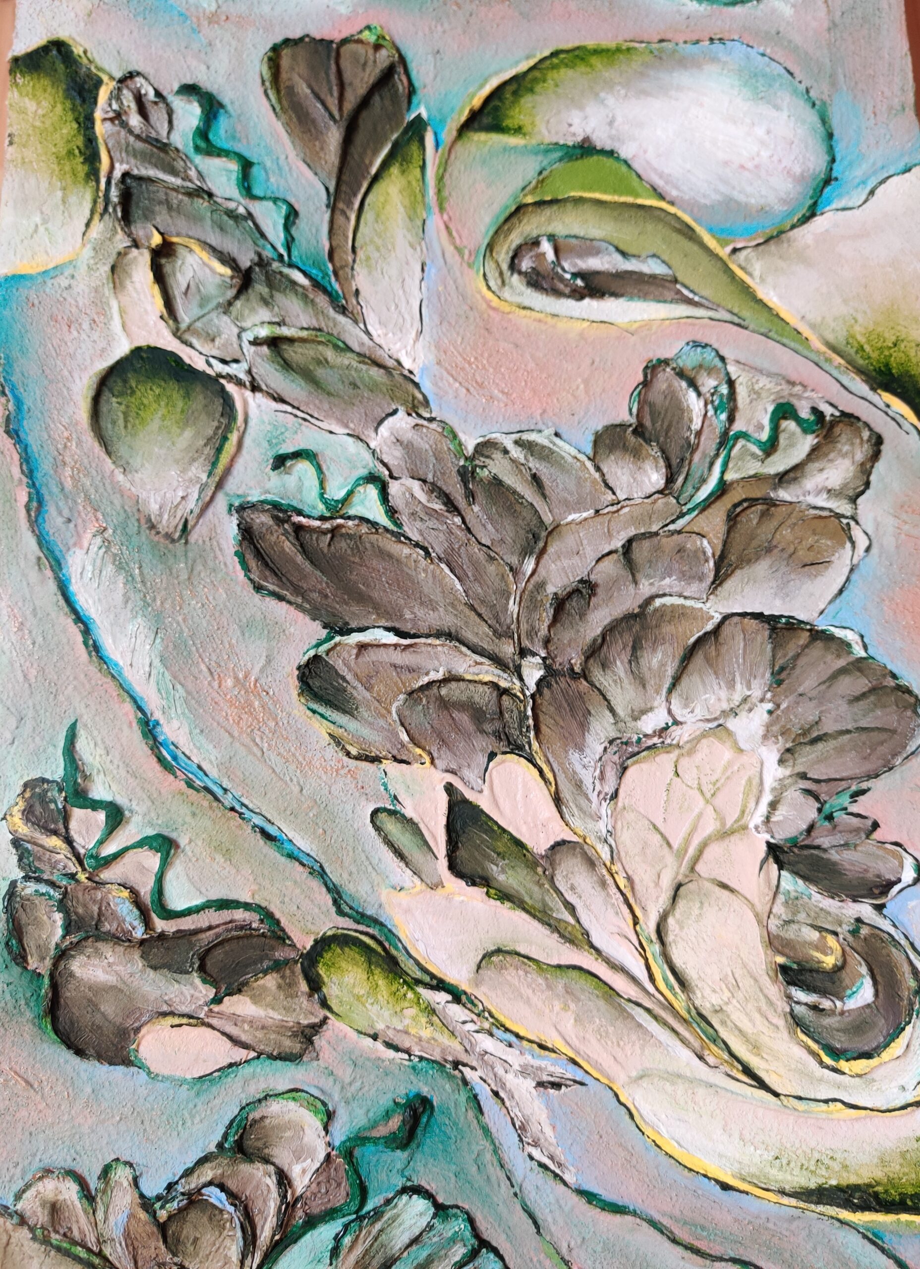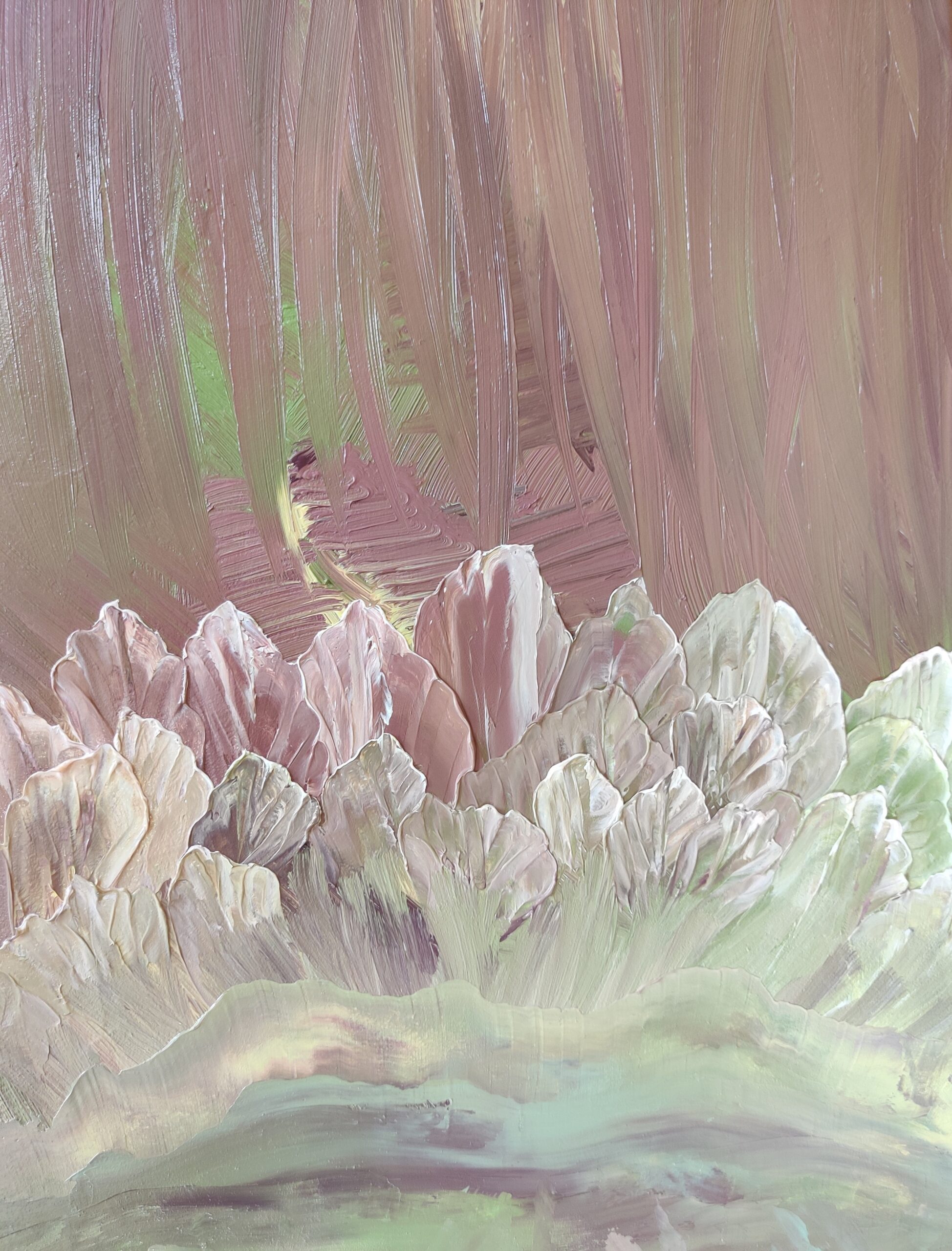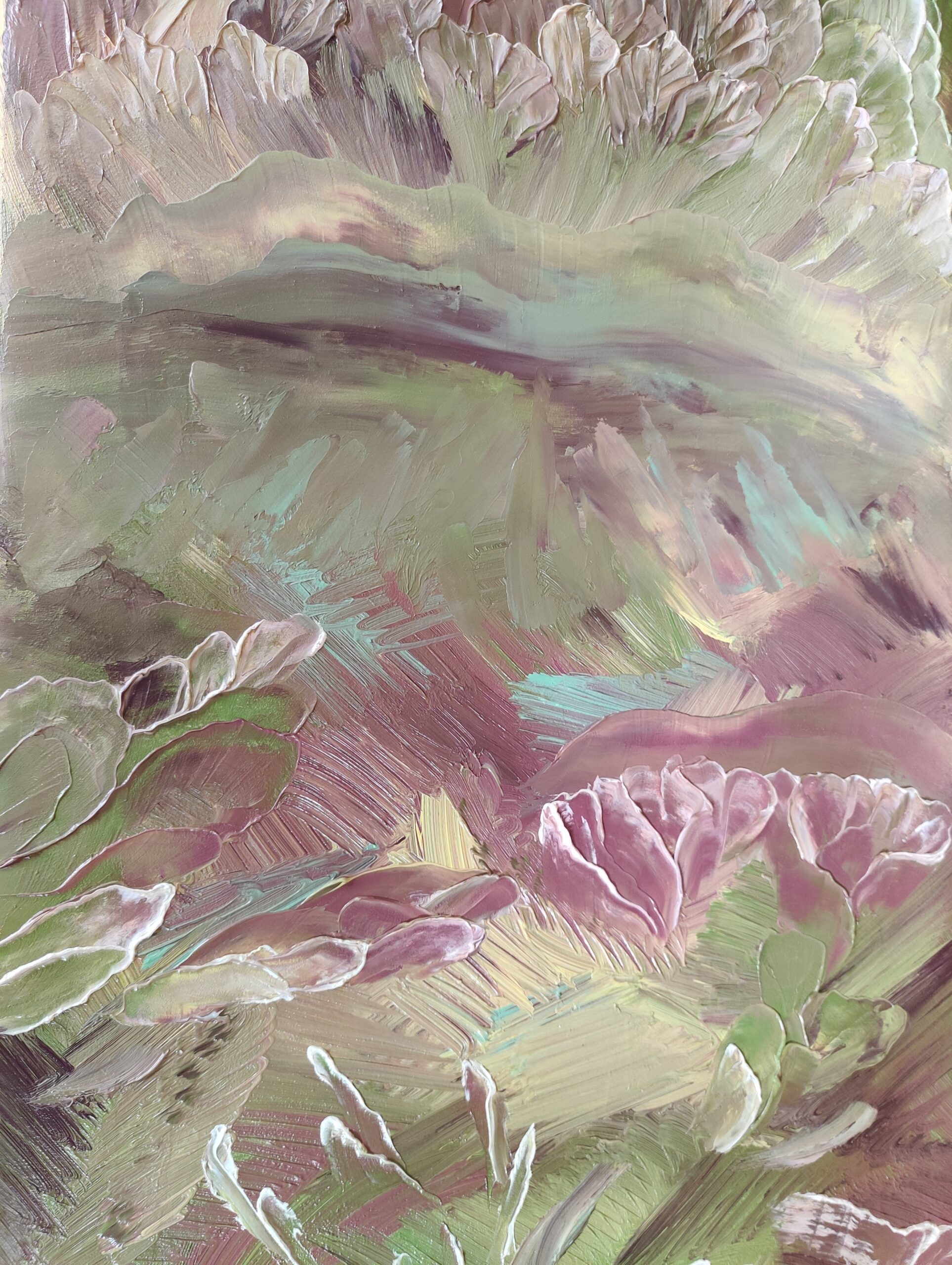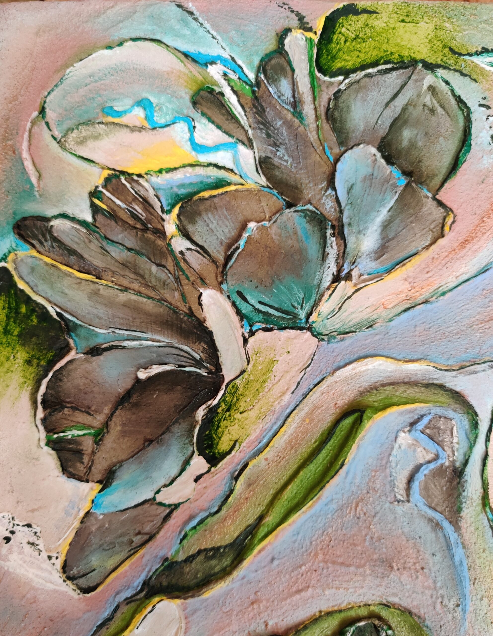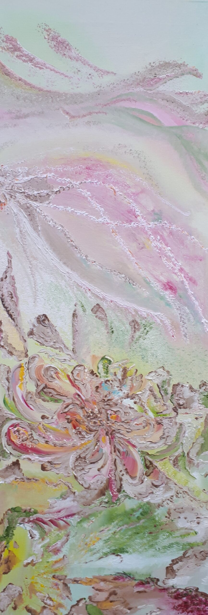 Helgemad hetked inimese mõttemaailmas. Osa elust, osa unelmaist, värvide kompositsioon peegeldab tuleviku nägemust endast ja võib-olla ka teiste rõõmudest.